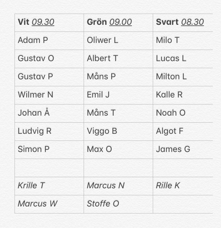 Här är spelinfo om cupen på söndag. Se bifogad bild för lagen och respektive lags samlingstid, samt se även bifogat dokument för spelschema. Vi samlas vid klubbstugan för ombyte.