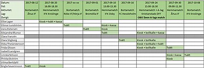 Har satt ihop ett nytt kiosk- och tvättschema för höstens aktiviteter.