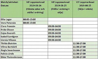 Den 25 augusti är det dags för den årliga loppisen på idrottsplatsen, se schema för F08 ovan. Är det någon tid som inte passar försök att byta med någon annan i laget.