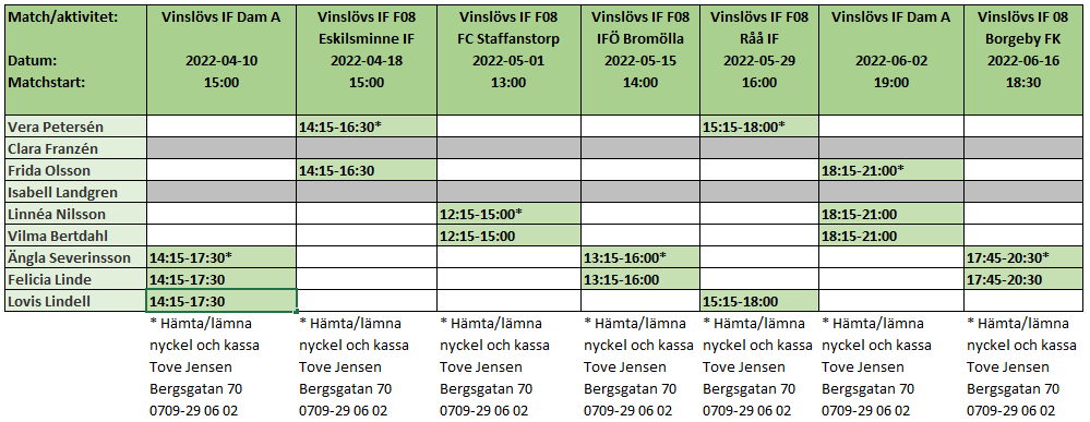Alla matcher ovan spelas på B-planen (B-kiosken) förutom Dam A matchen den 2/6 som spelas på A-Plan (A-kiosken). På Dam A och Herr A tas entré á 50 kronor.
