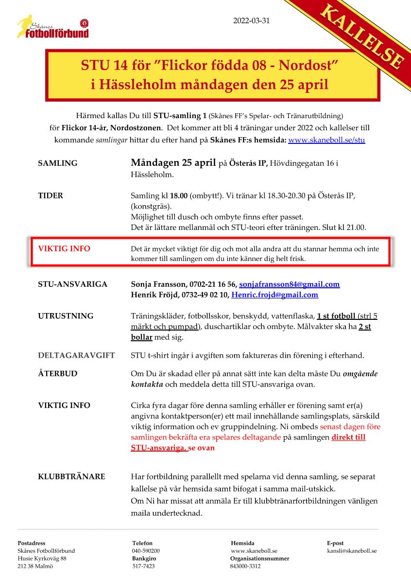 Information gällande STU 14, första tillfället 25 april i Hässleholm.
