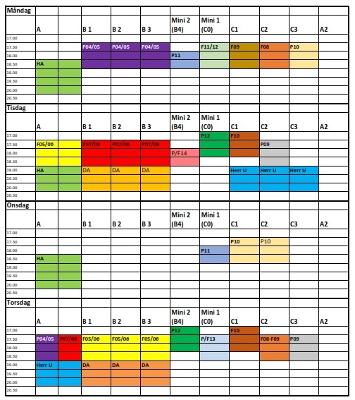 Här kommer planfördelningen gällande träning, schemat kommer även sättas upp i bollboden i veckan.